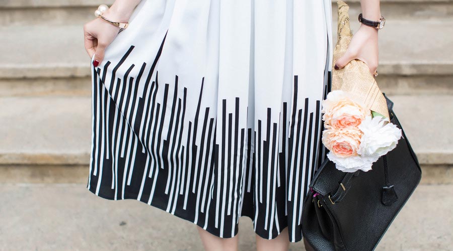 条纹白色裙摆